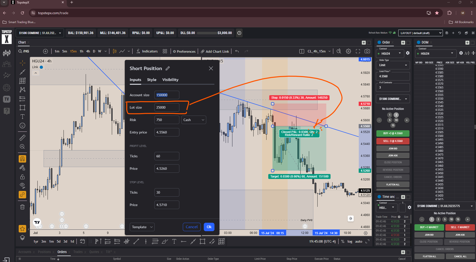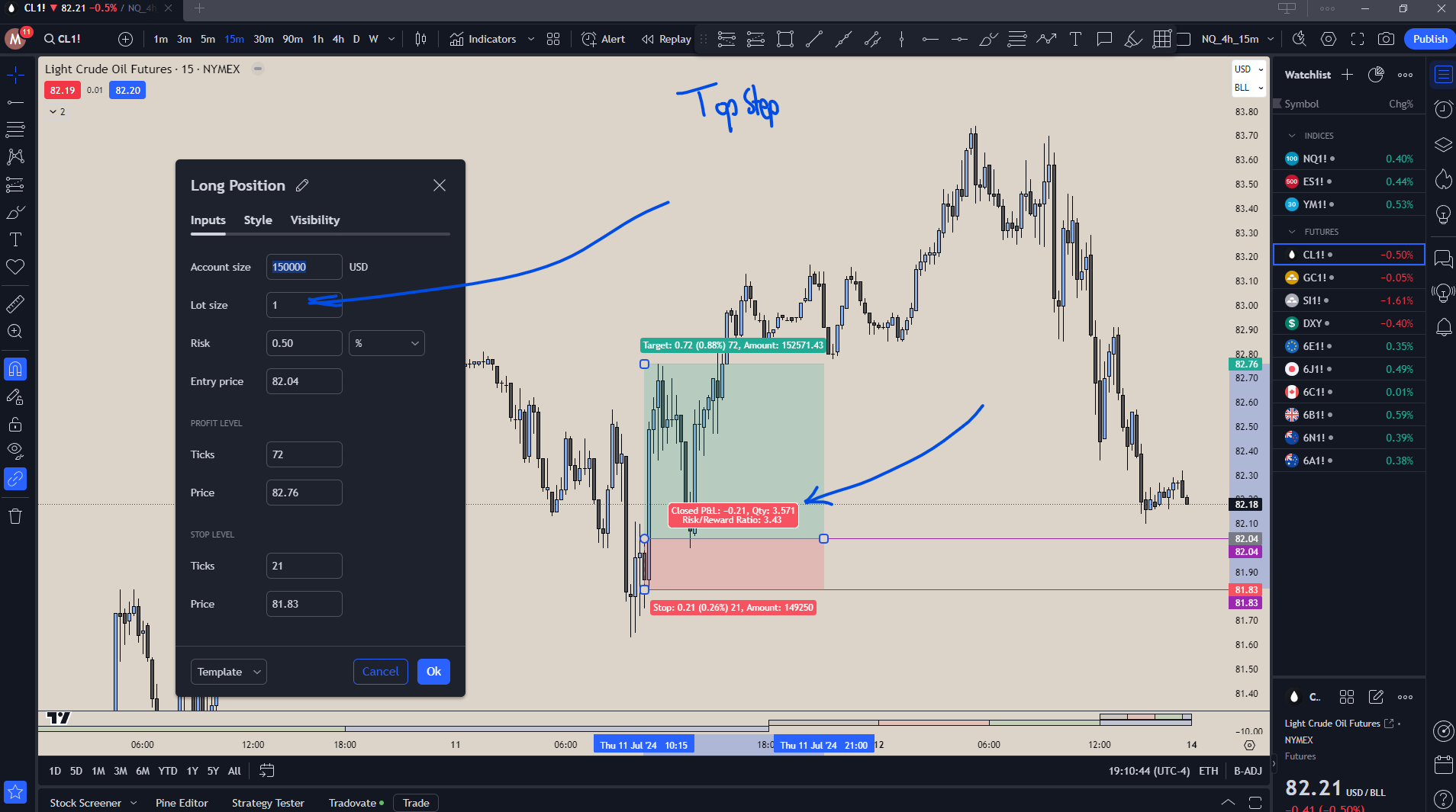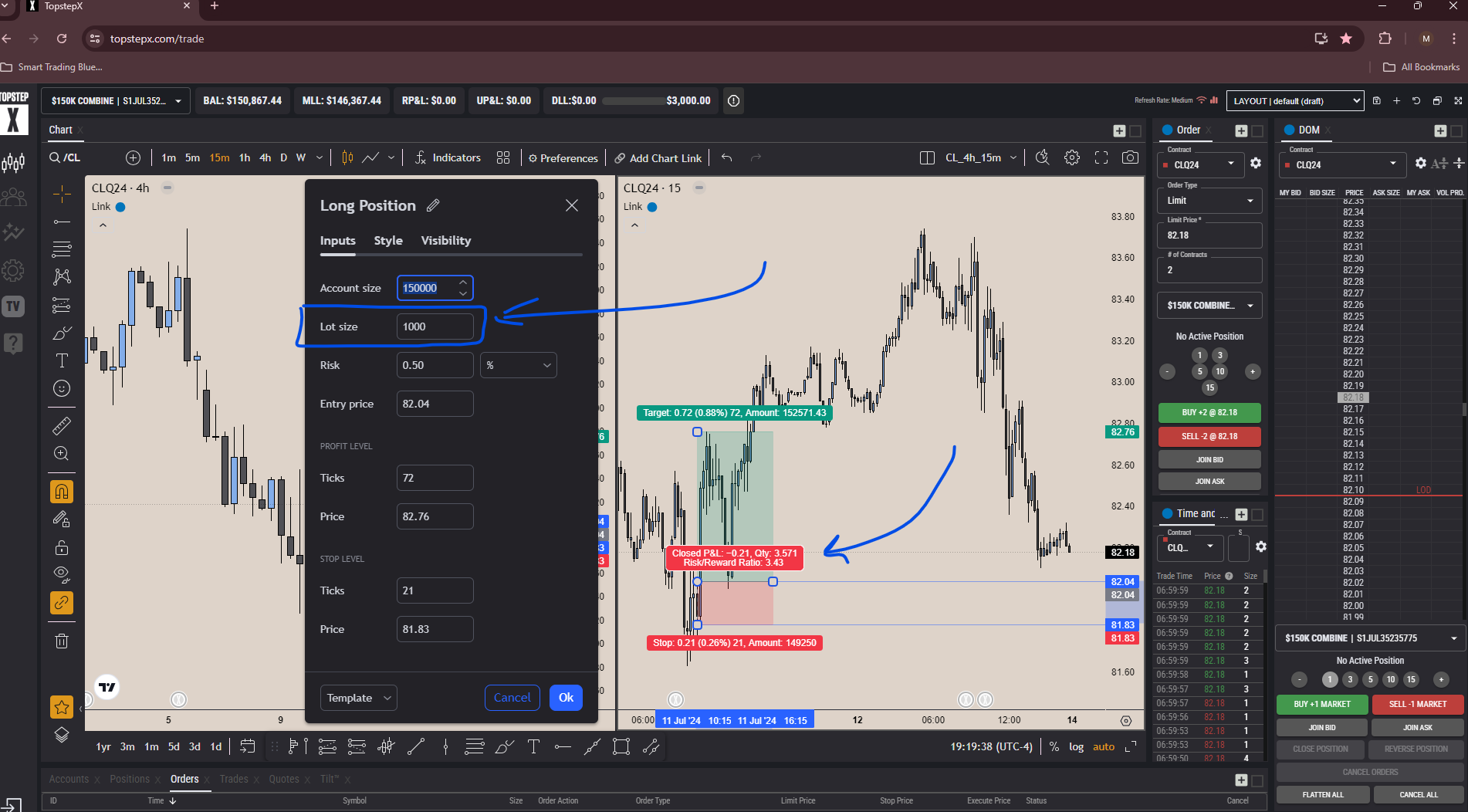 If you add 1000 into the Lot Size for CL on TopStepx the position size is correct