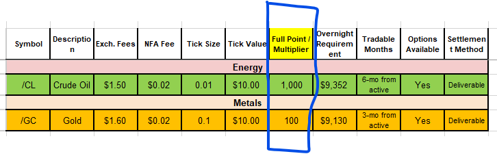 It would appear that the position sizing tool doesn't correlate correctly and you have to enter the Full Point/Multiplier to get the correct position sizing