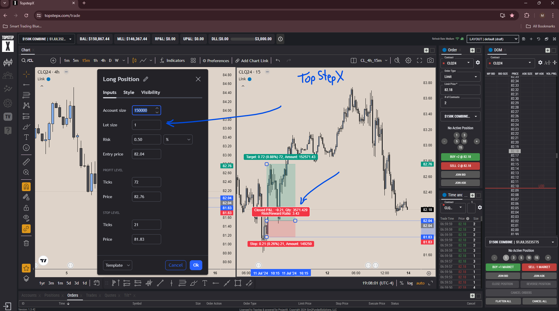 I have screen captures from TopStepX and Topstep / Tradingview Tradovate