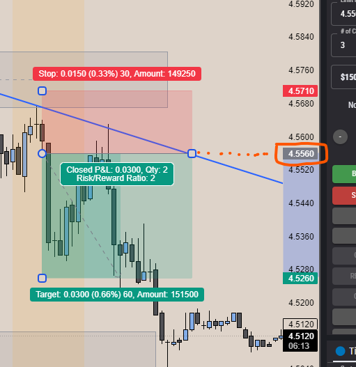 When I right click off the position sizer tool I do not get the correct entry level as per the position sizer tool unless I click at exactly the entry price level (which can cause another area of error for trade entry...). In this example the price I want to enter is 4.5560