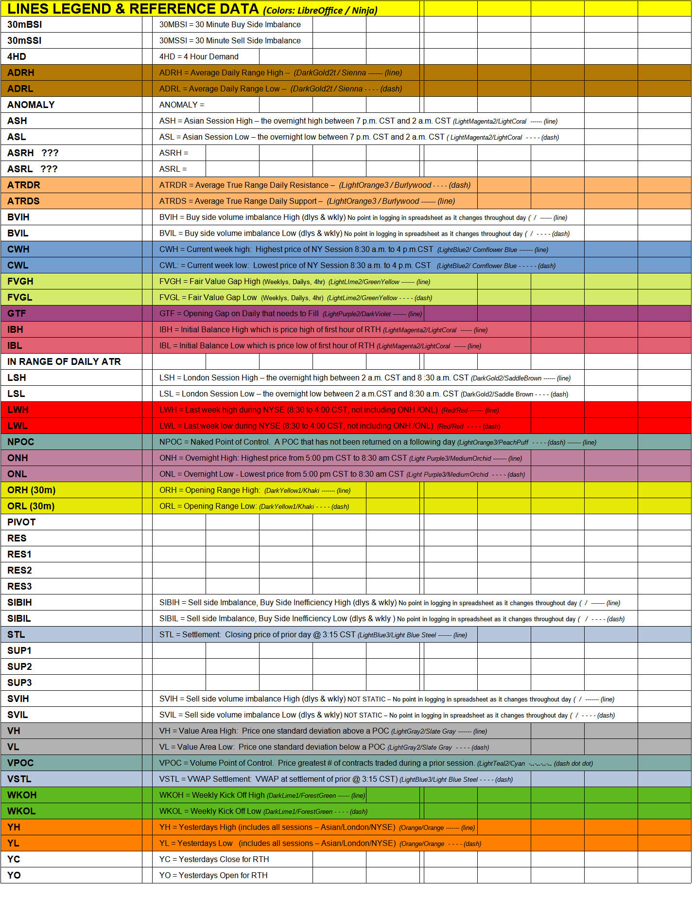 Todays changes were excellent (prior changes were… well that’s history so never mind on that). My suggestion is creating or having an Acronym/Definition Legend of sorts. RE: I have Hoags info in chart lines each day. Need the scoop on what is what on some of the current list of both old and new that are now on the daily list. I’ve attached my personal use item in development as a reference. Would be great to have a full definition of what each moniker is derived from… You can’t fill in all the blanks to what I am trying to figure out so I’ll have to keep working on that myself but I’ll take all the help I can get from TopStep as I do (example - How are the 30mBuyImbalances determined). Thanks!