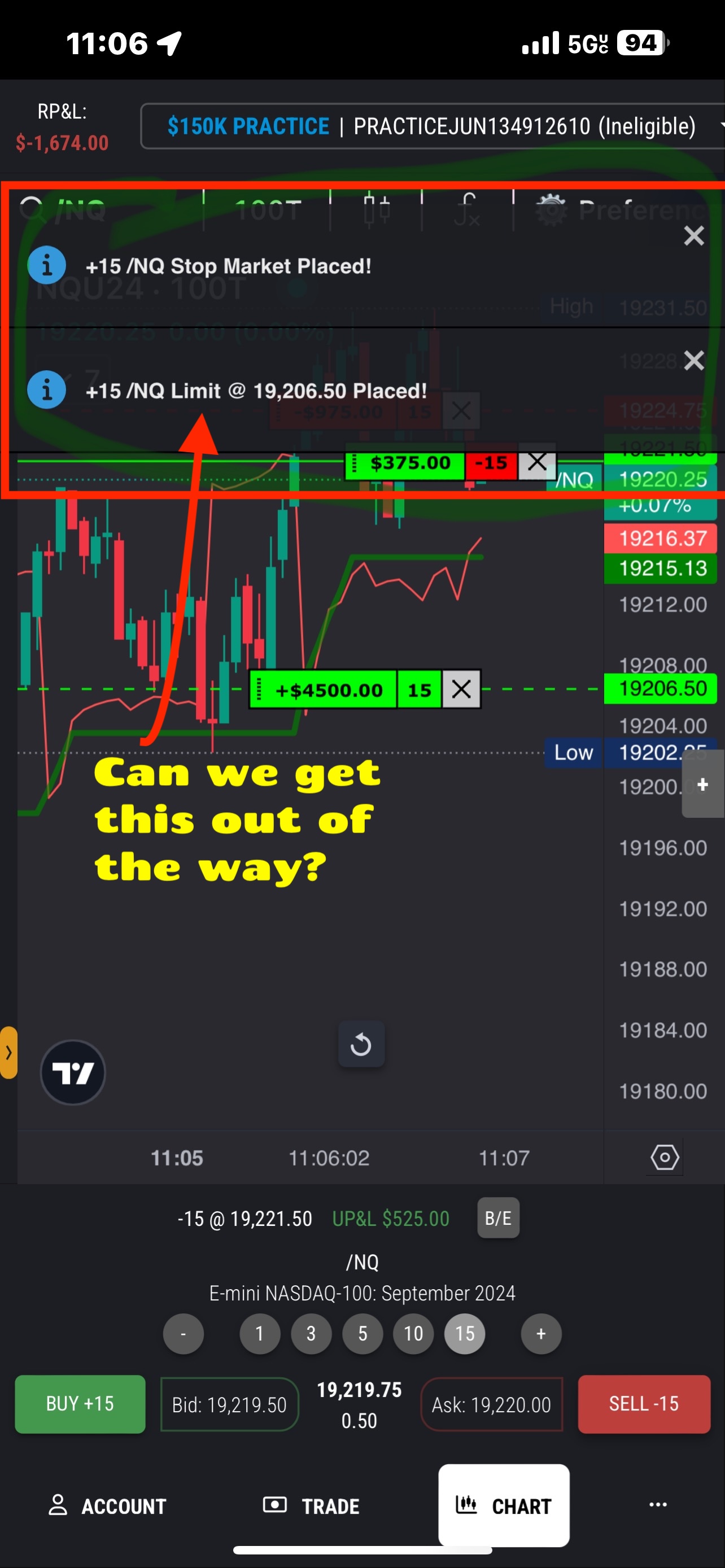 Trade Order Notifications Always In The Way! Is there a way to move these out of the way or just get rid of them? Once you place a trade you lose visibility of the trade.
