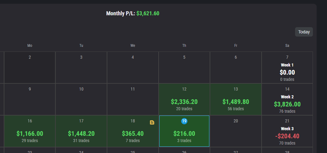 Week 3 should not be negative. Yes, I got a payout, but this is a P/L tracker, not an account balance tracker.